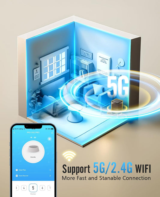 5L Automatic Cat Feeder with Sealed Outlet: 5G WiFi Automatic Dog Feeder with APP Control, Auto Cat Food Dispenser with Voice Recording for Pets, Detachable for Easy Clean - 21 Cup