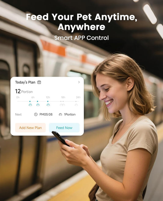 Automatic Cat Feeder, 5G WiFi Cat Food Dispenser with APP Remote Control, Pet Dry Food Smart Feeder, Programmable Timed Feeding, Dual Power Supply, 1-10 Meals Per Day, Stainless Steel Bowl