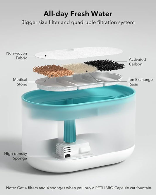 PETLIBRO 4 Packs Replacement Filters for Capsule Cat Water Fountain PLWF002, 2 Months Set of Replacement Filters for Ultra Quiet Pet Water Fountain