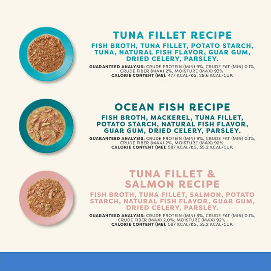 Sheba Selections Filets in Broth Adult Wet Cat Meal Complement Chicken, Tuna, or Shrimp Recipe, 1.3 oz. Cups, 24 Count