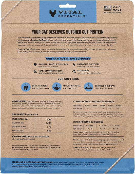 Vital Essentials Freeze-Dried Raw Beef & Chicken Meal or Mixer Cat Food Soft Nibs | 99% Beef, Chicken, Organs & Bone | 12 oz