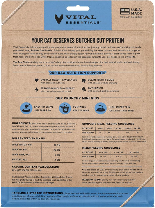 Vital Essentials Freeze-Dried Raw Beef & Chicken Meal or Mixer Cat Food Crunchy Nibs, 8 oz
