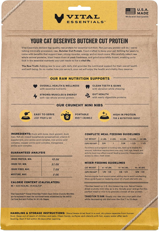Vital Essentials Freeze-Dried Raw Duck Meal or Mixer Cat Food Crunchy Nibs, 12 oz