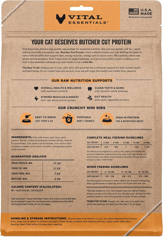 Vital Essentials Freeze-Dried Raw Pork Meal or Mixer Cat Food Crunchy Nibs, 12 oz