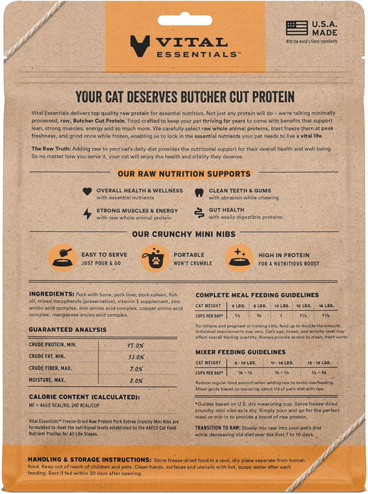 Vital Essentials Freeze-Dried Raw Pork Meal or Mixer Cat Food Crunchy Nibs, 8 oz