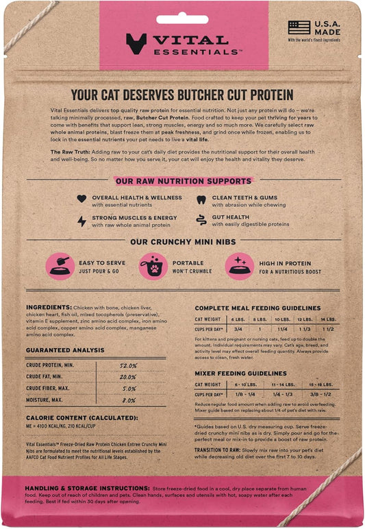 Vital Essentials Freeze-Dried Raw Chicken Meal or Mixer Cat Food Crunchy Nibs, 8 oz