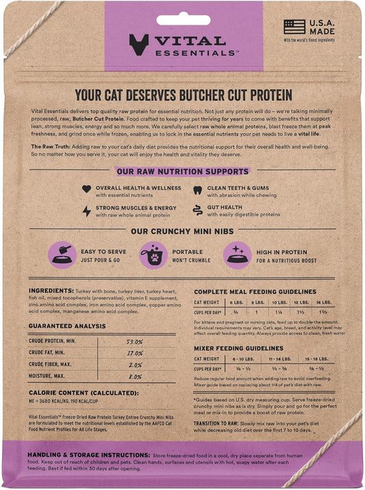 Vital Essentials Freeze-Dried Raw Turkey Meal or Mixer Cat Food Crunchy Nibs, 8 oz