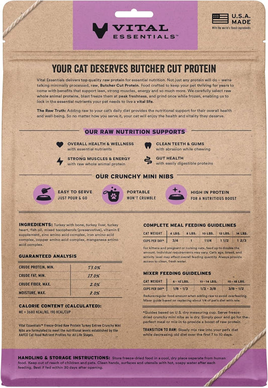 Vital Essentials Freeze-Dried Raw Turkey Meal or Mixer Cat Food Crunchy Nibs, 12 oz