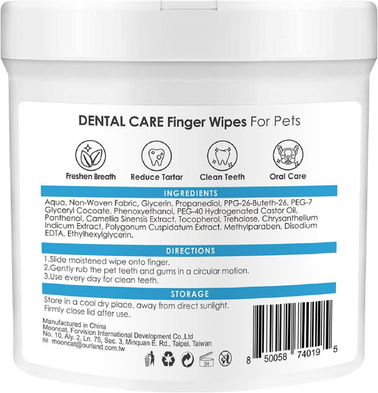 Mooncat Dental Finger Wipes for Dogs & Cats - Easy Teeth Cleaning to Remove Plaque, Tartar & Freshen Bad Breath - Gentle Tooth Wipes for Puppy & Kitten Care - 40 Counts