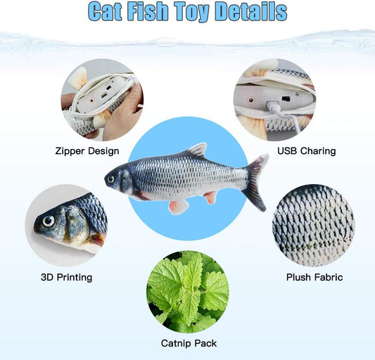 TOOGE 2 Pack 9" Floppy Fish Cat Toys with SilverVine and Catnip for Indoor Cats for Small Dogs Interactive Automatic Flopping Kicker Toys for Cats Puppy (Red Carp + Carp)