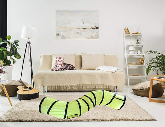 iCAGY Cat Tunnel for Indoor Cats Interactive, Rabbit Tunnel Toys, Pet Toys Play Tunnels for Cats Kittens Rabbits Puppies Crinkle Pop Up Yellow 47" Shape S