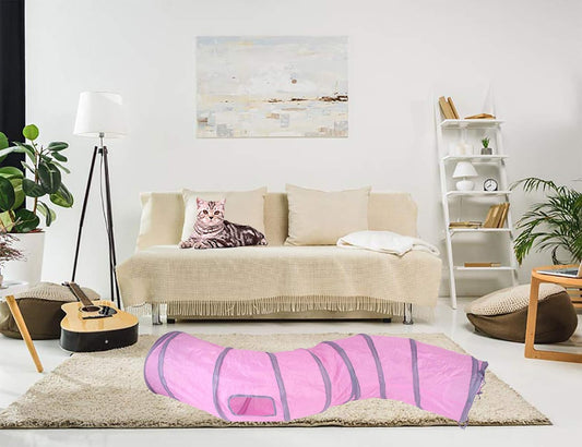 Cat Tunnel for Indoor Cats, Cute Peekaboo Cat Cave with Dangling Balls, Pet Donut Tunnel Bed with Circle Mat for Puppy Kitten Rabbit, Pink