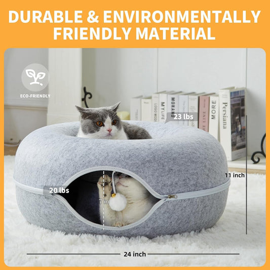 Jia Xi Cat Tunnel and Bed Combo - Donut Cat Condo & Cave, Universal for All Seasons (24 in * 24 in * 11 in), Light Grey