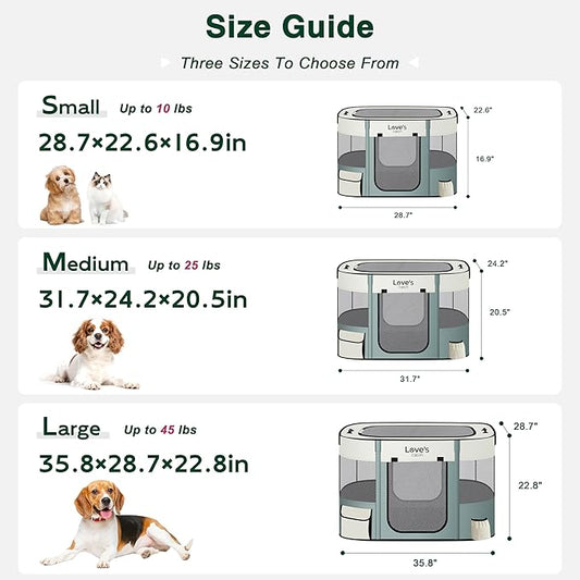 Love's cabin Pet Puppy Dog Playpen, Medium Dog Tent Crates Cage Indoor/Outdoor, Portable Exercise Playpen for Cat, Foldable Pop Up Dog Kennel Playpen with Carring Case (M, Gray Green)