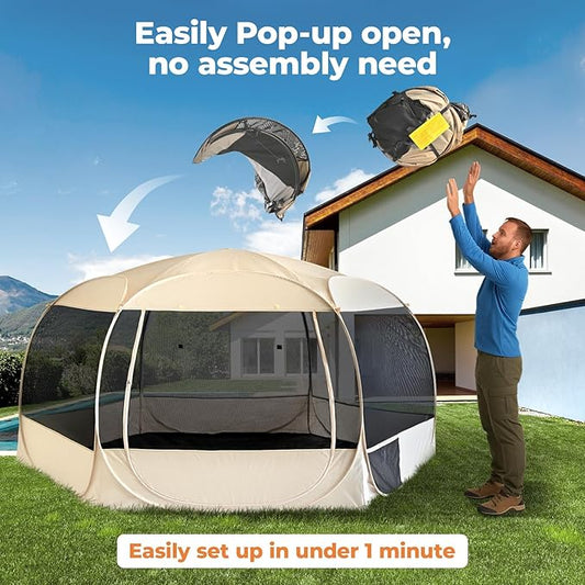 EighteenTek XXLarge Popup Portable Dog Houses, 10'x4.8'H Assembly-Free Gazebo-Style Dog Cot Cat Playpen Screen Pet Tent Sun Shade Shelter Dog Bed with Canopy for Outdoor Anti-Bugs with Leakproof Floor