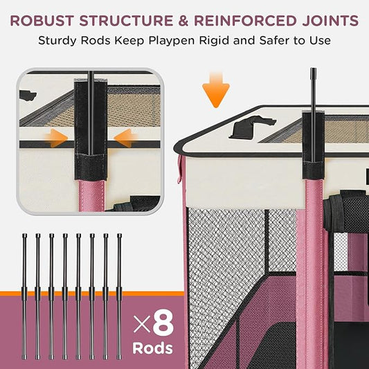 Dog Playpen, Portable Pet Play Pen for Cat, Puppies, Rabbits, Chickens, Foldable Large-Capacity Pet Tent for Indoor/Outdoor Travel Camping (Size XL Without Carry Bag)