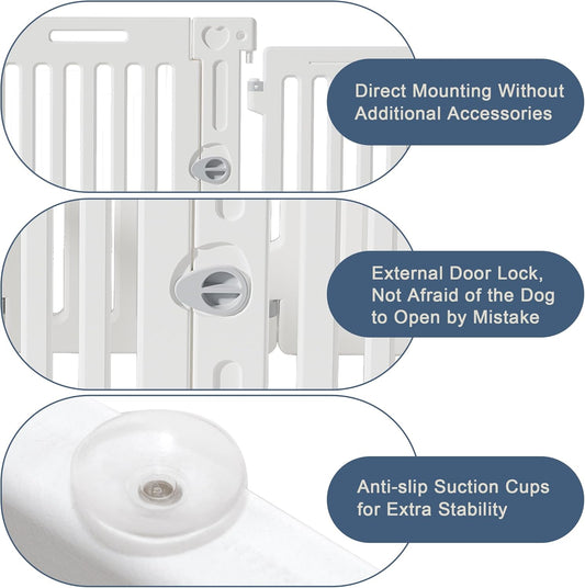 BHG Metal No-Assembly Freestanding Dog Gate with Door Walk Through, Extra Wide 96", Extra Tall 32" Pet Gate, Accordion Puppy Folding Playpen Dog Fence for Indoor & Outdoor, with 2PCS Support - Black