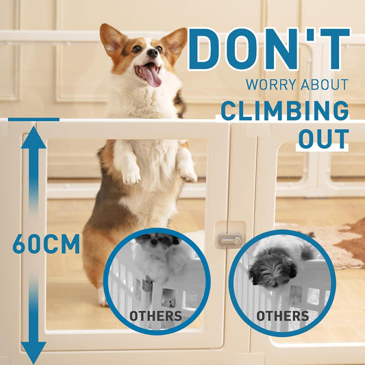 Acrylic Dog PlayPen, Clear Dog Play Pen for Puppy Cat Rabbit, Easy Assemble Pen, Preferable Small Cage, 23.6" H, 10Pcs
