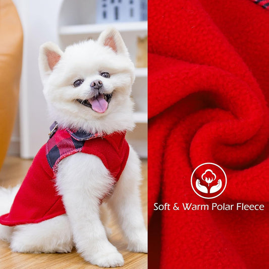 EXPAWLORER Fleece Dog Sweater - Classic Plaid Dog Jacket, Winter Coat Vest with 2 D-Rings for Leash, Pet Cold Weather Clothes, Sweatershirt for Boy or Girls