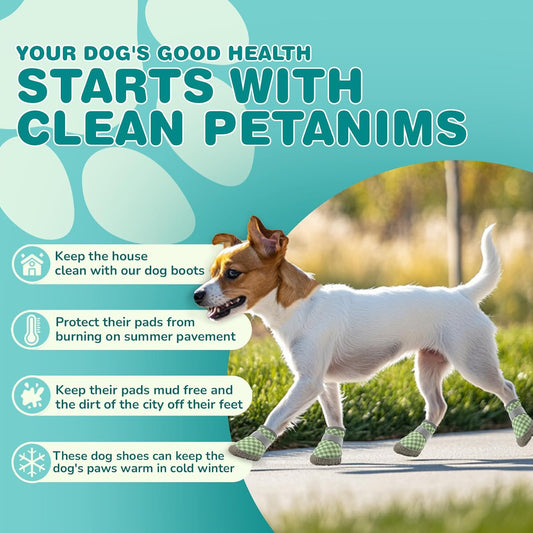 Small Dog Shoes, Breathable Puppy Boots & Paw Protectors for Winter Snow, Summer Hot Pavement, Dog Booties with Anti-Slip Rubber Soles for Hardwood Floors Green Size 4