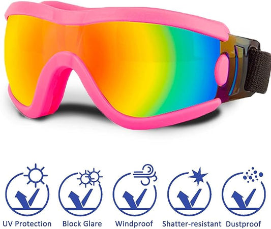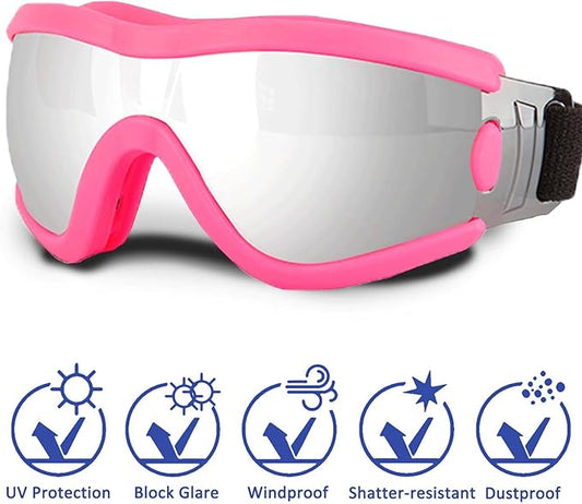 Dog Goggles Dog Sunglasses for Medium Breed UV Protection Windproof with Adjustable Head Straps Chin Straps for Ride Car/Hiking Travel/On Beach-Pink