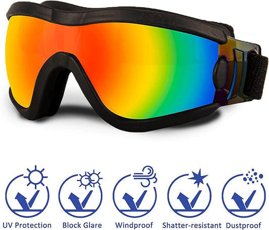 QUMY Dog Goggles UV Protection for Small to Medium Breed, Dog Sunglasses Windproof Anti-Fog Dustproof Snowproof, Puppy Glasses for Outdoor Riding Driving with Comfortable Frame Adjustable Straps
