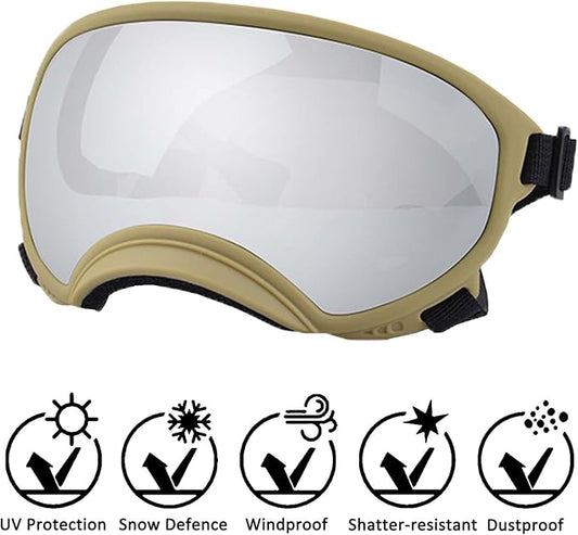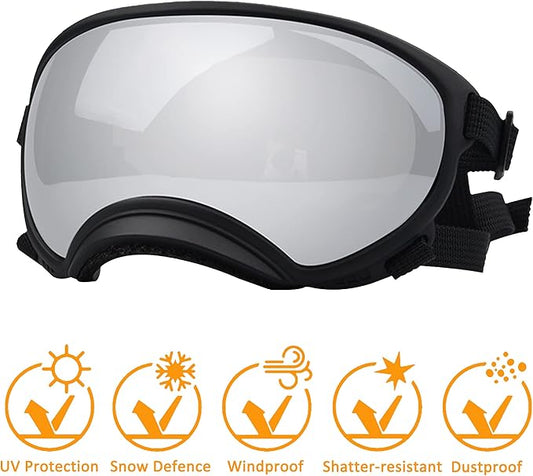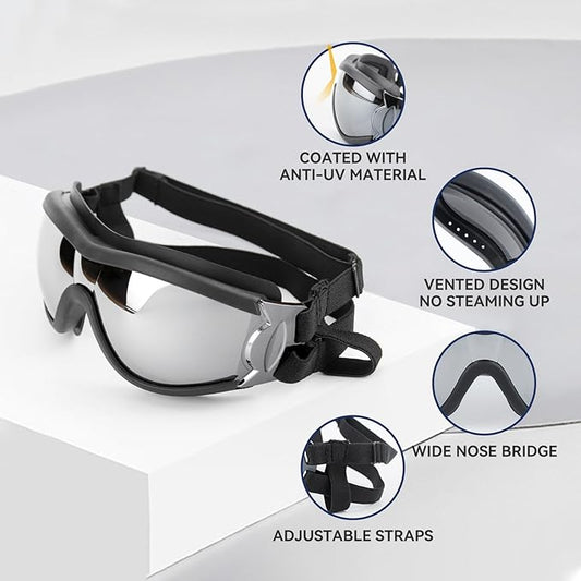 Dog Goggles Dog Sunglasses for Medium to Large Breed Anti-UV Eye Protection with Adjustable Straps- Silver