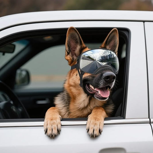 NAMSAN Dog Goggles for Large Dogs, Wide Eyecup & Soft Frame, Anti-UV Sunglasses for Dogs Medium to Large Breed, Driving Dog Eye Protection, Windproof Dustproof, Adjustable, Reflect Silver Lens