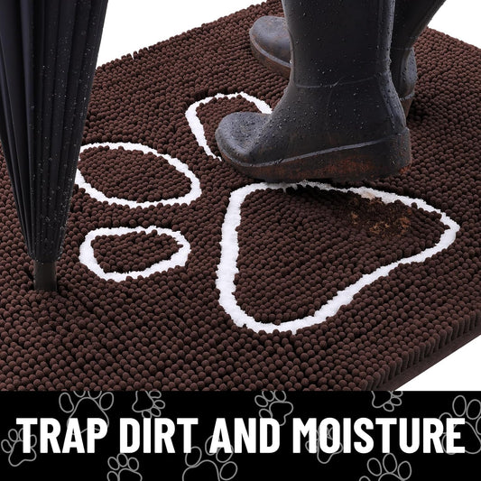 Smiry Dog Door Mat for Muddy Paws, Absorbent Dirt Trapper Non Slip Quick Dry Washable Chenille Mat for Mud Dogs, Entry Rug for Indoor and Outdoor (70x24 Inches, Brown and White)