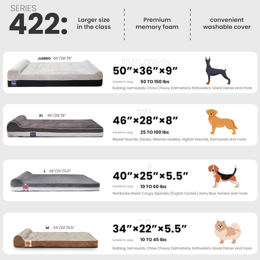 Made4Pets Orthopedic Dog Bed for Extra Large Dogs, Supportive Foam XL Pet Bed Sofa with Washable Removable Cover, Waterproof Large Dog Couch Bed, Non-Slip Bottom and Egg-Crate Foam, Brown
