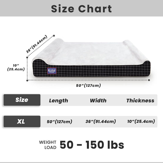 Laifug Orthopedic Memory Foam Extra Large Dog Bed with Pillow and Durable Water Proof Liner & Removable Washable Cover & Smart Design (Jumbo (50"x36"x10"), Black Grid Gray)