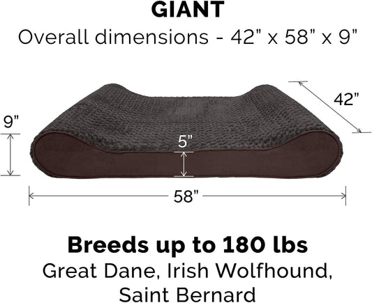 Furhaven Orthopedic Dog Bed for Extra Large Dogs w/ Removable Washable Cover, For Dogs Up to 180 lbs - Ultra Plush Faux Fur & Suede Luxe Lounger Contour Mattress - Chocolate, Giant/XXXL