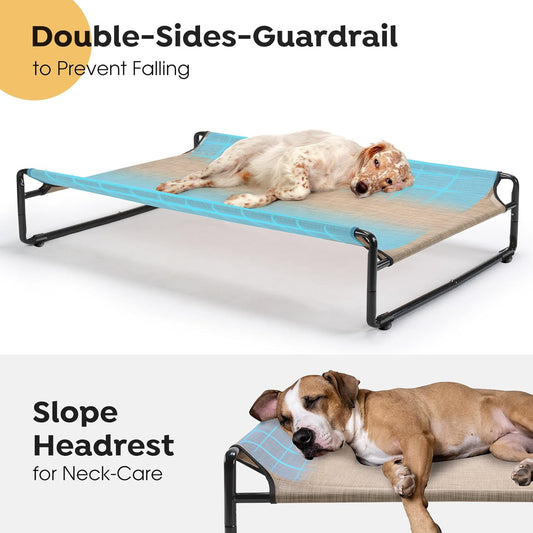 Veehoo Original Outdoor Elevated Dog Bed, Cooling Raised Dog Cot for Large Dogs, Portable Standing Pet Hammock Platform with Washable Breathable Mesh, No-Slip Feet, X-Large, Beige Coffee, CWC2201