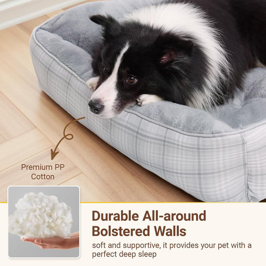 MIXJOY Dog Beds for Medium Dogs Washable, Rectangle Pet Bed Medium Size Dog, Orthopedic Sleeping Pet Sofa Bed, Soft Calming Cat Beds for Indoor Cats, Anti-Slip Bottom with Multiple Size (25'', Grey)