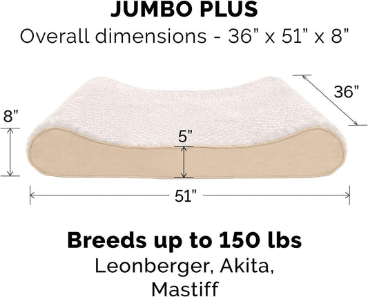 Furhaven Orthopedic Dog Bed for Large Dogs w/ Removable Washable Cover, For Dogs Up to 150 lbs - Ultra Plush Faux Fur & Suede Luxe Lounger Contour Mattress - Cream, Jumbo Plus/XXL