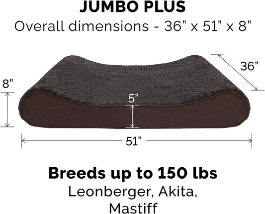 Furhaven Orthopedic Dog Bed for Large Dogs w/ Removable Washable Cover, For Dogs Up to 150 lbs - Ultra Plush Faux Fur & Suede Luxe Lounger Contour Mattress - Chocolate, Jumbo Plus/XXL