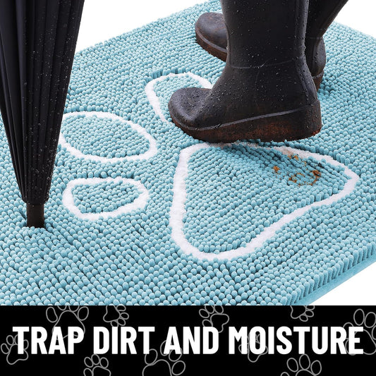 Smiry Dog Door Mat for Muddy Paws, Absorbent Dirt Trapper Non Slip Quick Dry Washable Chenille Mat for Mud Dogs, Entry Rug for Indoor and Outdoor (30x20 Inches, Atlantic Blue)