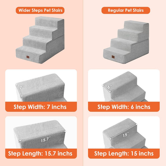 Dog Stairs for Small Dogs - High Density Foam Pet Steps, Extra Wide Dog Ramp with Non-Slip Bottom for High Beds, Couch and Sofa, Best for Dogs Injured, Older Doggy Cats