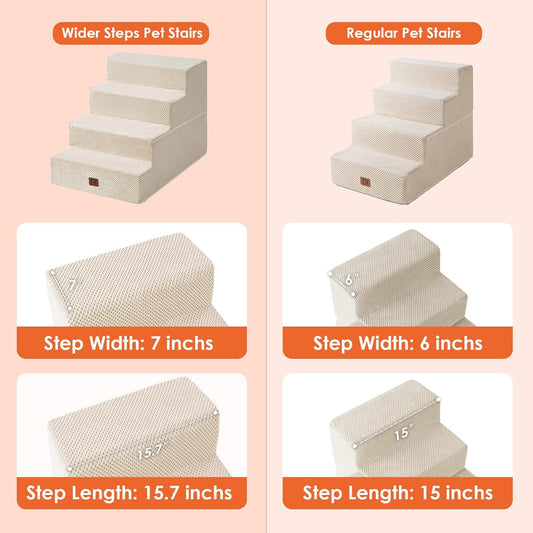 EHEYCIGA Dog Stairs for Bed 20" H, 4-Step Extra Wide Dog Steps for High Bed, Pet Steps for Small Dogs and Cats, Non-Slip Balanced Pet Ramp Indoor, Beige