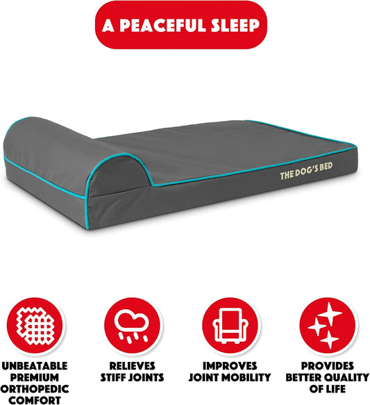 The Dog’s Bed Orthopedic Headrest Dog Bed Med Grey/Blue 34x22, Memory Foam, Pain Relief: Arthritis, Hip & Elbow Dysplasia, Post Surgery, Lameness, Veterinary Approved, Waterproof Washable Cover