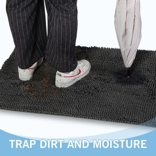 Smiry Dog Door Mat for Muddy Paws 44x32, Absorbs Moisture and Dirt Doormat, Non-Slip Washable Quick Dry Chenille Front Door Mat Indoor Entrance, Entryway Carpet for Inside Floor, Grey