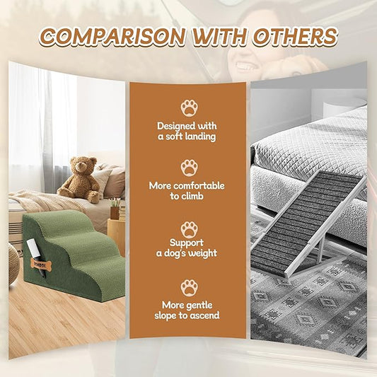 Romrol Dog Stairs Ramp for High Beds Couches, High Density Foam Pet Steps with Durable Non-Slip Waterproof Fabric Cover, Dog Stairs for Small Dogs or Cats or Pets, 3-Step,15 Inch,Green