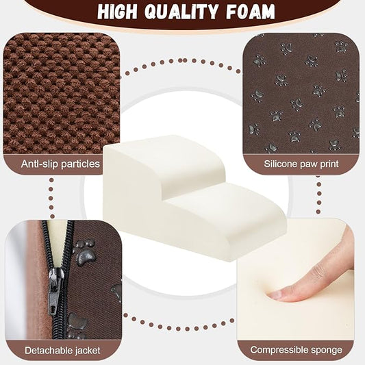 Dog Stairs for Small Dogs - High Density Foam Pet Steps, Extra Wide Dog Ramp with Non-Slip Bottom for High Beds, Couch and Sofa, Best for Dogs Injured, Older Doggy Cats