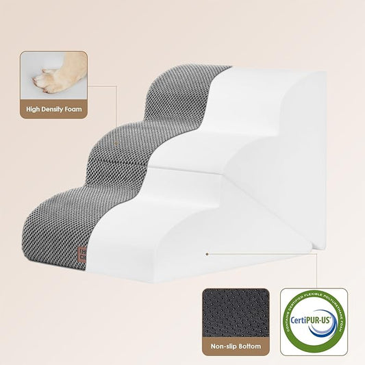 4 Step Pet Stairs Ramp for High Beds Sofas 18-24 Inch with Sturdy Non Slip Waterproof Pads, Machine Washable Cover Indoor Balanced Design for Cats Dogs Small Medium Large XL Pets Grey