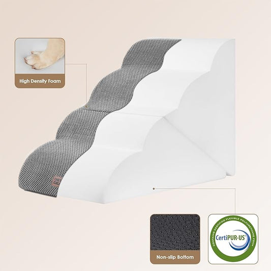 5-Step Curved Dog Stairs for High Beds Up to 30", Non-Slip Foam Pet Ramp for Large Dogs and Cats, Washable Cover, Soft Climbing Steps for Couch & Sofa