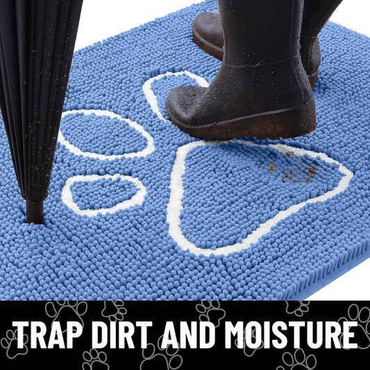 Smiry Dog Door Mat for Muddy Paws, Absorbent Dirt Trapper Non Slip Quick Dry Washable Chenille Mat for Mud Dogs, Entry Rug for Indoor and Outdoor (36x24 Inches, Atlantic Blue)