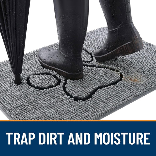 OLANLY Dog Door Mat for Muddy Paws 47x24, Absorbs Moisture and Dirt, Absorbent Non-Slip Washable Doormat, Quick Dry Chenille Mud Mat for Dogs, Entry Indoor Entryway Carpet for Inside Floor, Dark Grey