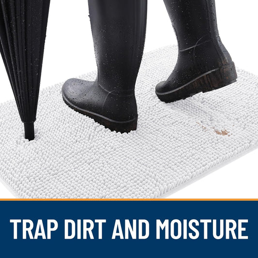 OLANLY Dog Door Mat for Muddy Paws 59x24, Absorbs Moisture and Dirt, Absorbent Non-Slip Washable Doormat, Quick Dry Chenille Mud Mat for Dogs, Entry Indoor Entryway Carpet for Inside Floor, White