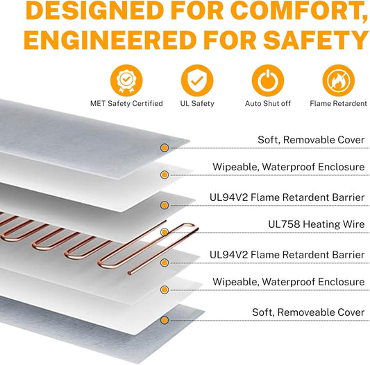 Toozey Large Pet Heating Pad, 6 Adjustable Temperature Dog Cat Heating Pad with Timer, Waterproof Heated Dog Bed with Chew Resistant Cord, Indoor Electric Pet Heated Mat 35x24in