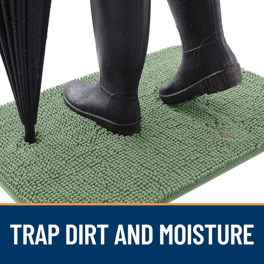 OLANLY Dog Door Mat for Muddy Paws 47x17, Absorbs Moisture and Dirt, Absorbent Non-Slip Washable Doormat, Quick Dry Chenille Mud Mat, Entry Indoor Entryway Carpet for Inside Floor, Olive Green